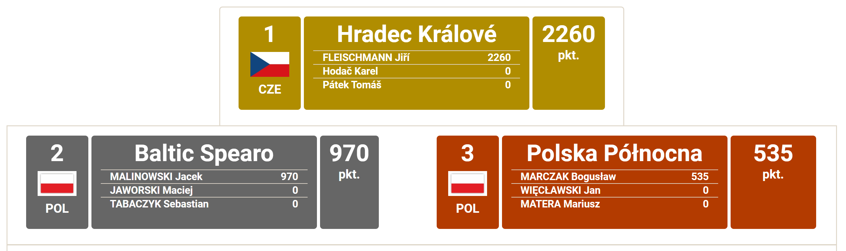 Klasyfikację drużynową po dwóch dniach zmagań wygrała drużyna gości z Czech - Hradec Králové wyprzedzając Baltic Spearo i Polska Północna.