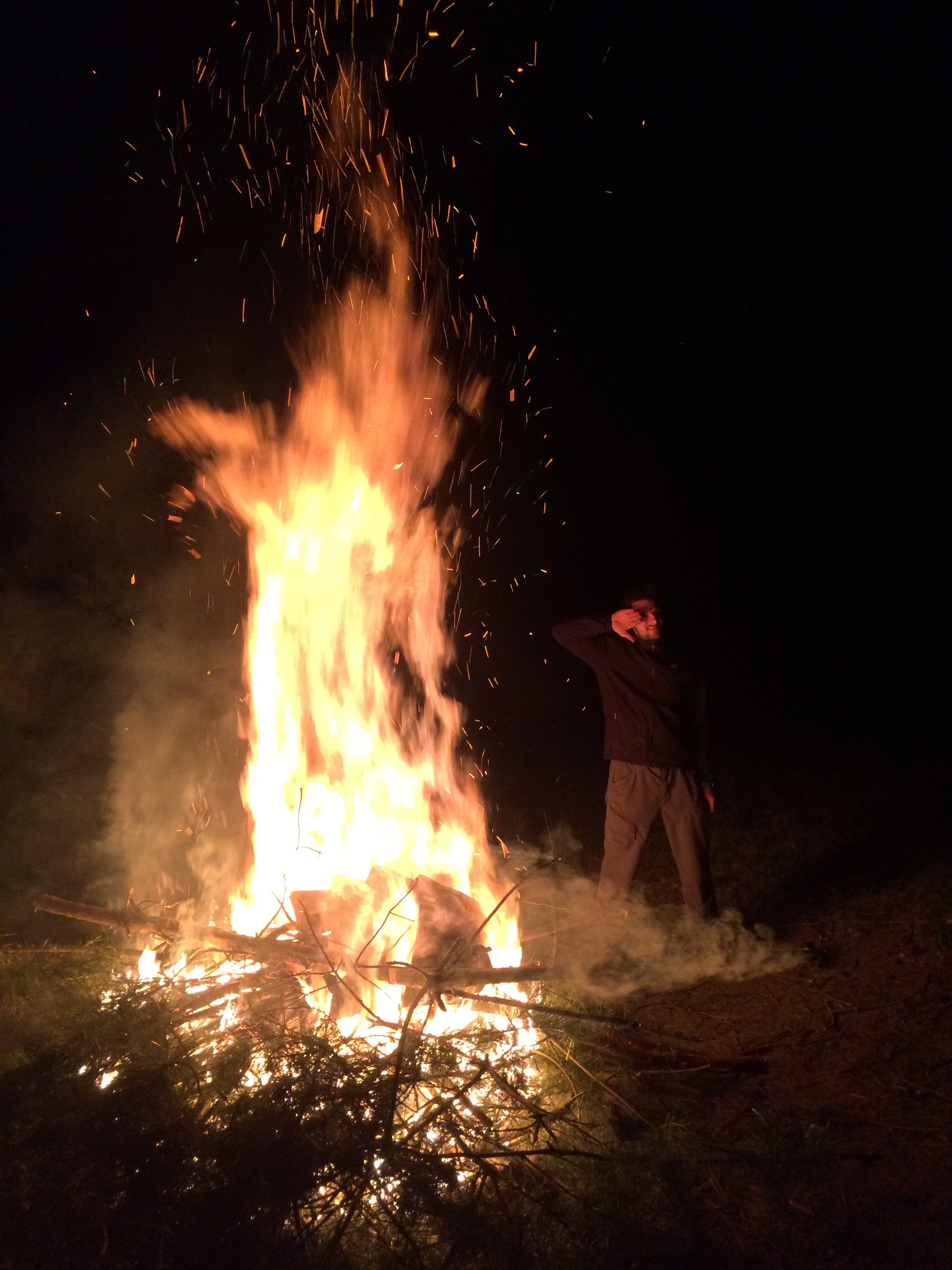 Wieczorem oczywiście ognisko w pełnym składzie. Z Wrocławia dojechali jeszcze kolega Wojciech z koleżanką Amelią, jako kolejna i ostatnia już wrocławska załoga. Mamy nadzieję, że Wojciech wstąpi niebawem w nasze szeregi. A na ognisku już tradycyjnie, czyli działo się! Ciepły majowy wieczór sprzyjał przebywaniu pod gołym niebem. Kiełbaski z ogniska, mięsiwo z grilla i zimne napoje smakowały niezmiernie, jak zwykle w takich okolicznościach. Gwar i śmiech ucichły oczywiście dopiero wraz ze wschodzącym słoneczkiem.