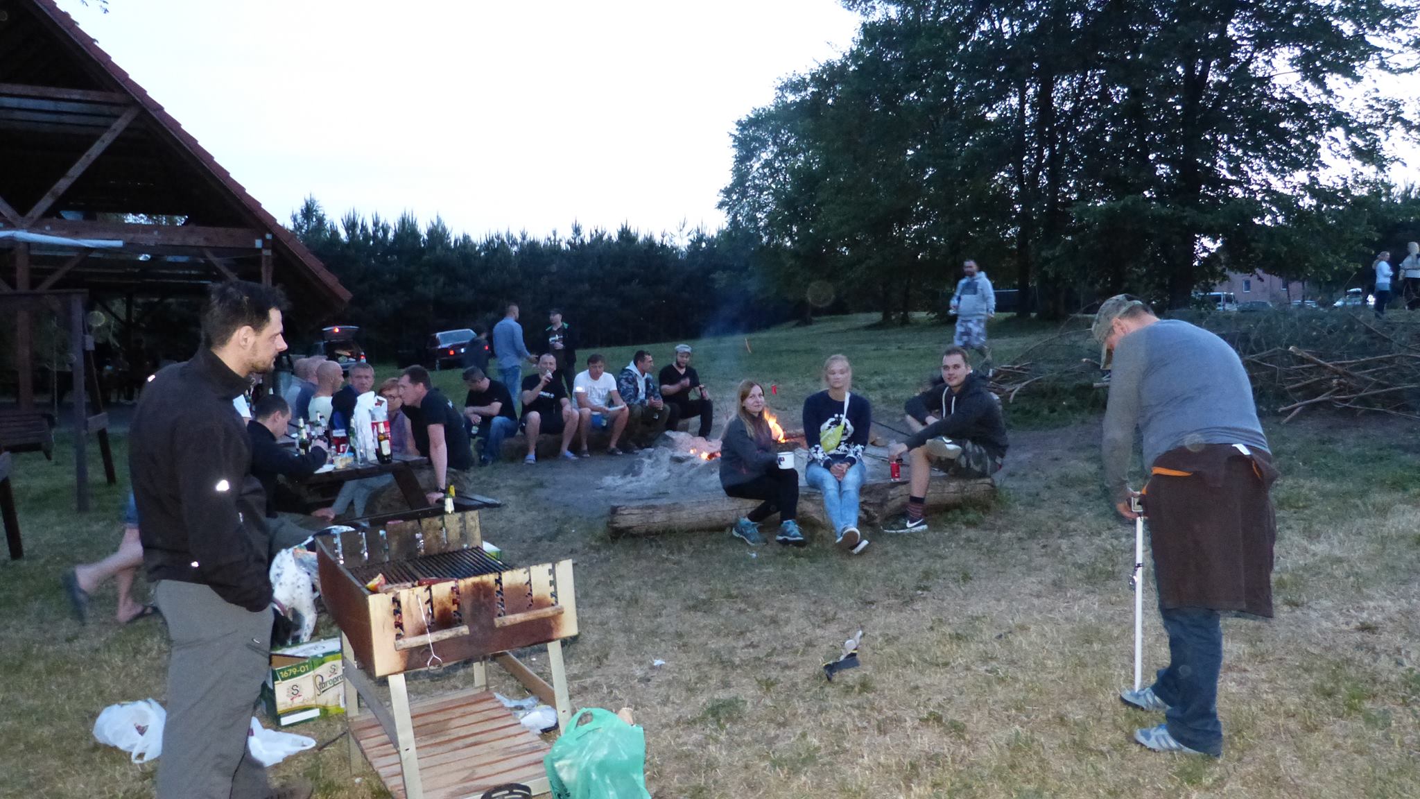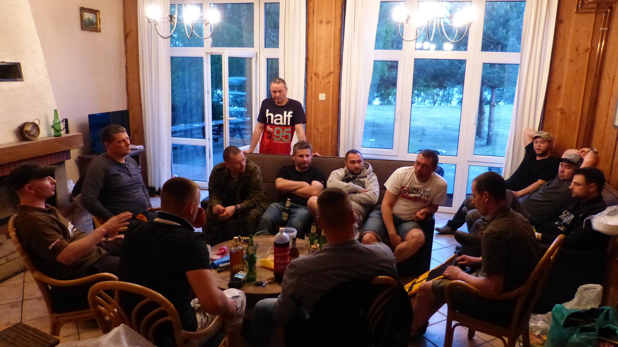 Zanim słoneczko zaszło za horyzont, przywitaliśmy jeszcze łowców z Warmii i Mazur, czyli Pawła Laskowskiego z Olsztyna oraz Piotra z Ojcem, którzy przyjechali aż z Orzysza. Szacunek Panowie! Do wieczora dotarły jeszcze żona Konrada Agata, oraz Ważniejsza Połowa naszego Prezesa, czyli Magda. Listę przyjezdnych późnym wieczorem zamknął nasz znamienity podwodny łowca i filmowiec Piotr, który przybył z rodziną reprezentując Sosnowiec. Jedni głodni po pływaniu, inni zmęczeni długą podróżą ochoczo zasiedli do suto zastawionych stołów. Kolacja szybko zamieniła się w wesołą biesiadę, na której odbyło się rytualne smażenie upolowanych zdobyczy, a która tradycyjnie już zakończyła się bladym świtem.