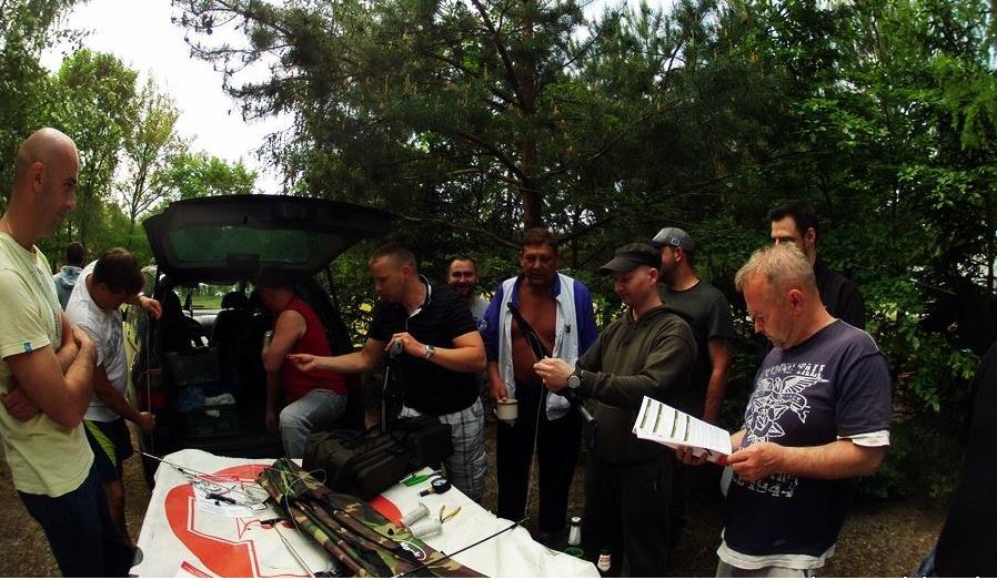 VIII zlot naszego stowarzyszenia minął szybciej niż by się chciało… Niedzielny poranek przywitał pogodą wręcz lipcową. Prysznic, jajecznica na stołówce Amalii i w końcu nastąpił ten paskudny moment, kiedy trzeba się pakować. Tylko wizja ostatniej wizyty w jeziorze poprawiała nieco nastroje. Po śniadaniu Krzysiek otworzył swoje mobilne stoisko Huntersuba… Błyszczące nowością Harpie, Chimery, nizałki, pokrowce wzbudziły jak zawsze spore zainteresowanie. Radość na twarzach szczęściarzy odbierających swoje zamówione wcześniej zabawki wręcz trudna do opisania. Niechaj służą długie lata! W tym czasie nie próżnował również Paweł Laskowski, który przeprowadził kurs dla drugiej grupy kandydatów na łowców. Połamania grotów Panowie!